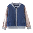 Un style unique entre la matière jean et les manches à paillettes. Le motif de tête de licorne sur le dos apporte sa touche girly et chic.