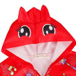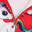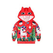 Une veste légère licorne en rouge ou en rose. La première veste est dans le thème de noël. La deuxième montre une licorne avec sa chevelure arc-en-ciel. La capuche apporte une touche de déguisement avec des oreilles et des yeux.